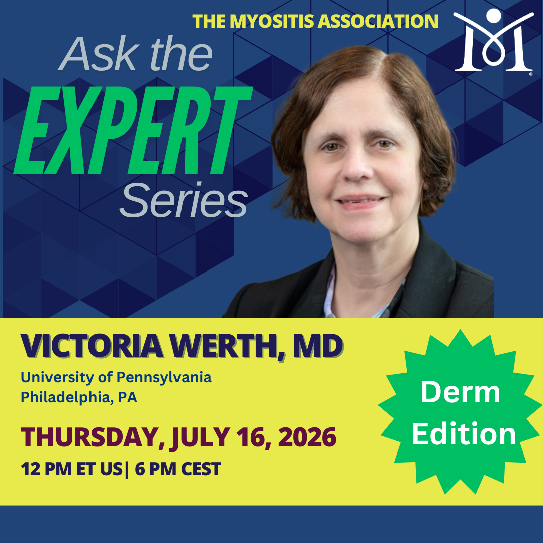 TMA’s Ask the Expert series is our most popular webinar series. It provides an opportunity for our community to get answers to their burning questions from an expert who likely has more knowledge than their doctor. This is also a chance for the community to meet a member of TMA’s expert Medical Advisory Board or another distinguished member of the myositis medical community.