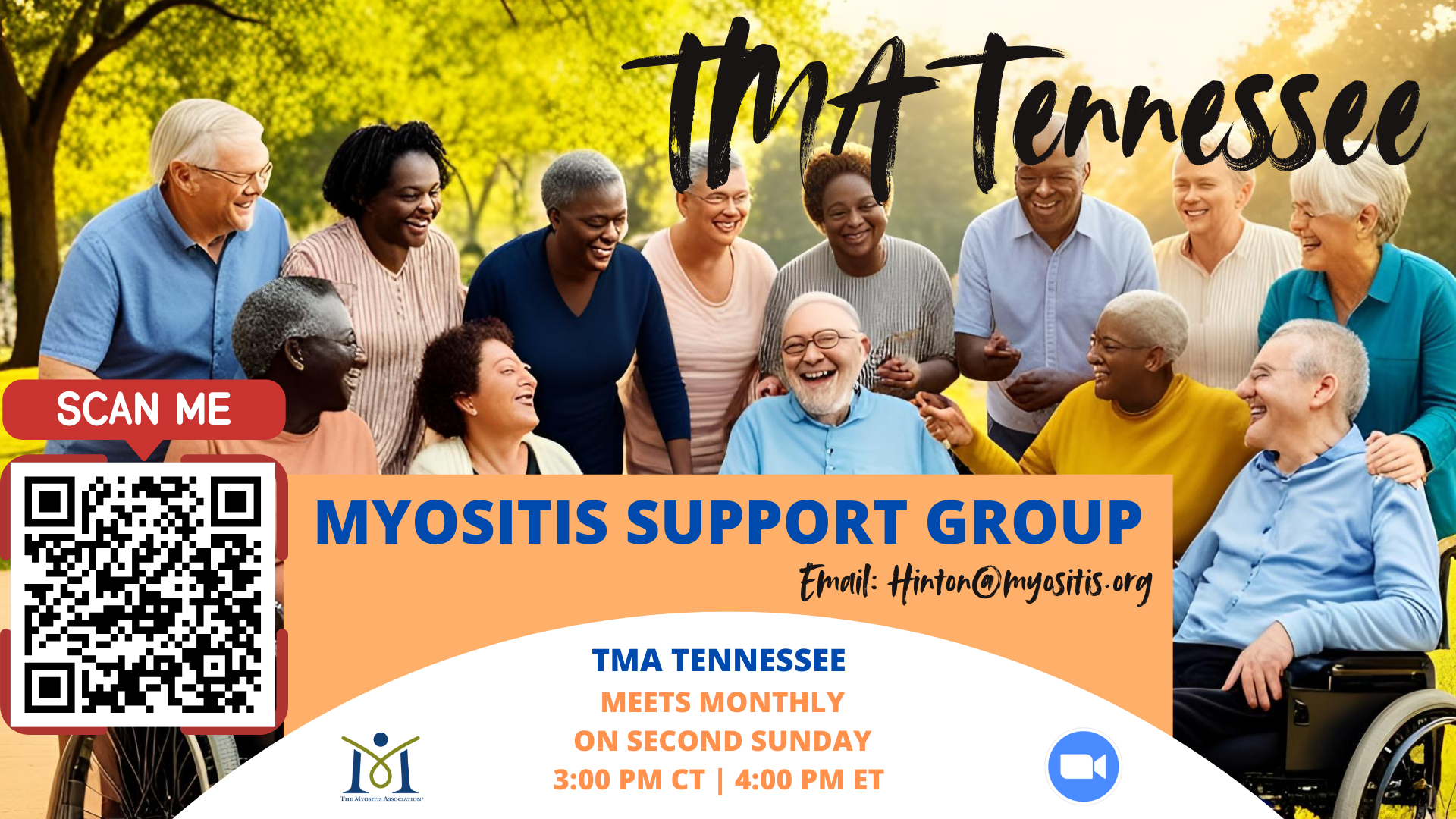 TMA Tennessee meets on the second Sunday of each month at 3:00 PM CT | 4:00 PM ET. Email leader Sharon Hinton at Hinton@myositis.org. Register here.